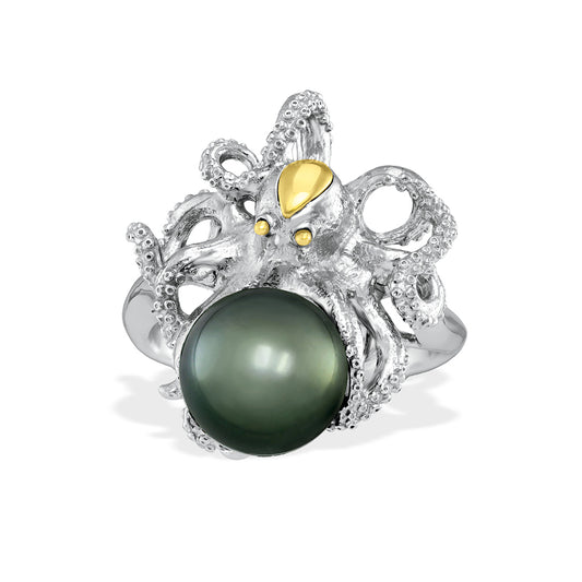 Silver and Gold Tahitian Pearl Octopus Ring